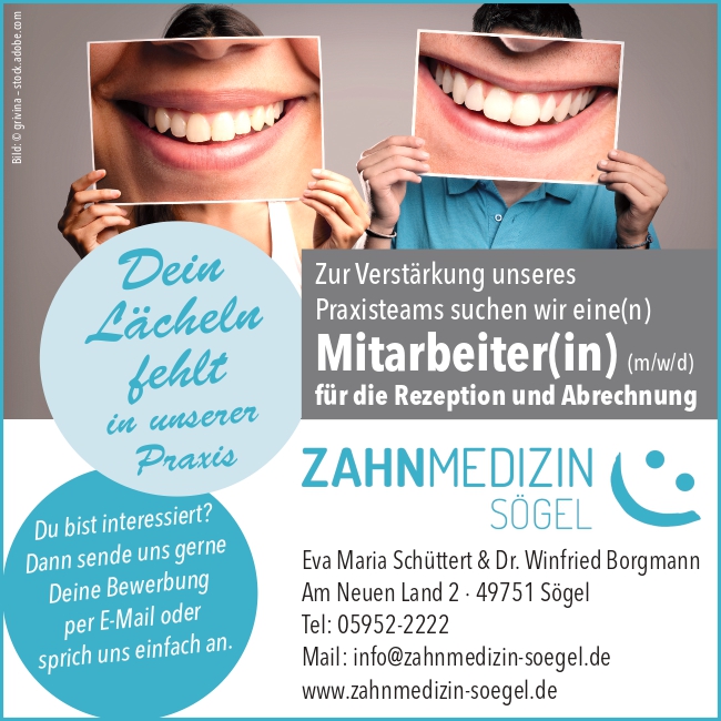 Zahnmedizin Sögel  |  Eva Maria Schüttert & Dr. Winfried Borgmann  |  Tel.: 05952 2222  |  E-Mail: info@zahnmedizin-soegel.de